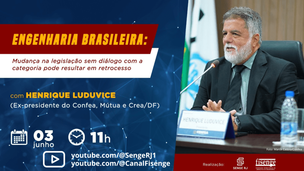 Está no ar, nos canais do YouTube do Senge-RJ e a Fisenge a entrevista com o ex-presidente do Confea, Mútua e Crea-DF, Henrique Luduvice. O papo tem como tema as mudanças na Lei 5194/66, que regula a profissão de engenheiro e engenheira.
